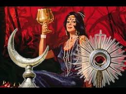 “The women was arrayed in purple & scarlet (traditional colors of the Roman Church) and was adorned with precious stones and pearls (detailing the outward beauty & splendor of the Roman Church), and having in her hand a golden cup (the Eucharists) full of abomination and the filthiness of her fornication (see The Eucharist Strikes the Gospel),