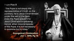The English term antichrist transliterates from the Greek antichristos, which means more than just an enemy of Christ, but one who usurps the position of Christ; one who pretends to the throne of Christ with subversion. Vicarious Christi, being the Latin equivalent of antichrist, which transliterates into ‘Vicar of Christ’ – the title claimed by all popes, who to this day presume to be standing in the holy place.